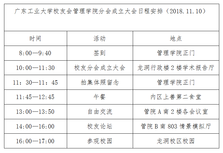 学院于11月10日(星期六)举行60周年校庆暨成立管理学院校友分会,并开展一系列交流和联谊活动,特通知全体教职工返校参加活动,当好东道主。