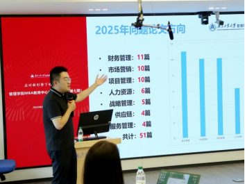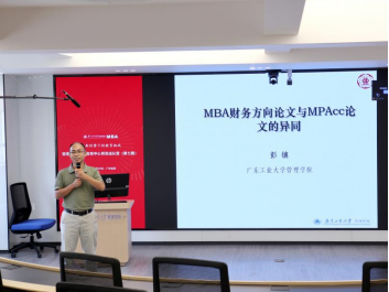 彭镇副教授随后围绕“MBA财务方向论文选题与MPAcc论文选题的异同”展开了主题分享。他重点讲述了学位论文的选题总体要求,明确了MBA论文与MPAcc论文选题的差异,分享了MBA优秀案例研究论文的选题,并就这些论文选题与老师们进行了互动交流。