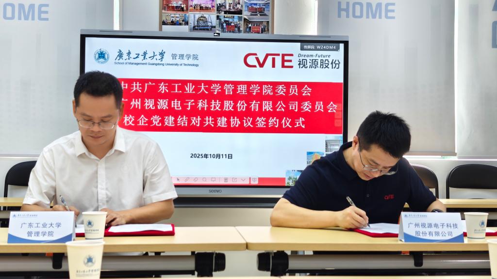 10月11日,管理学院党委与广州视源电子科技股份有限公司党委签订校企党建结对共建协议,同步开展应届党员毕业生专场招聘,以就业合作的方式深化校企党建共建。