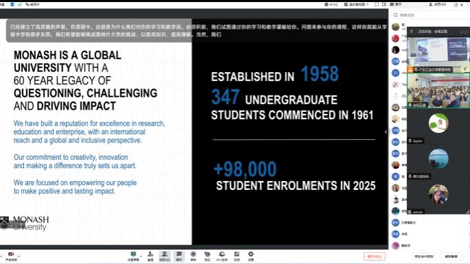 此次交流活动的成功举办,进一步巩固了两校合作关系,为国际化人才培养注入新动能。未来,广东工业大学管理学院与蒙纳士大学商学院将持续深化务实合作,携手培养具备全球视野与竞争力的高素质人才。