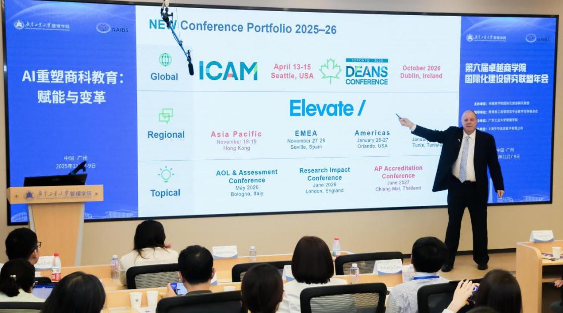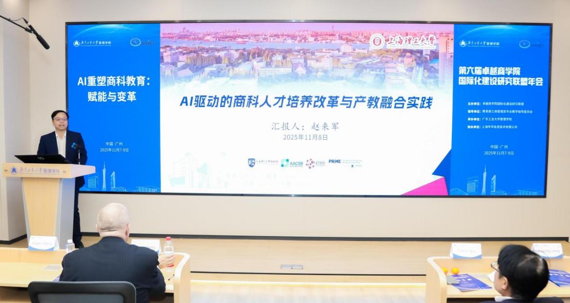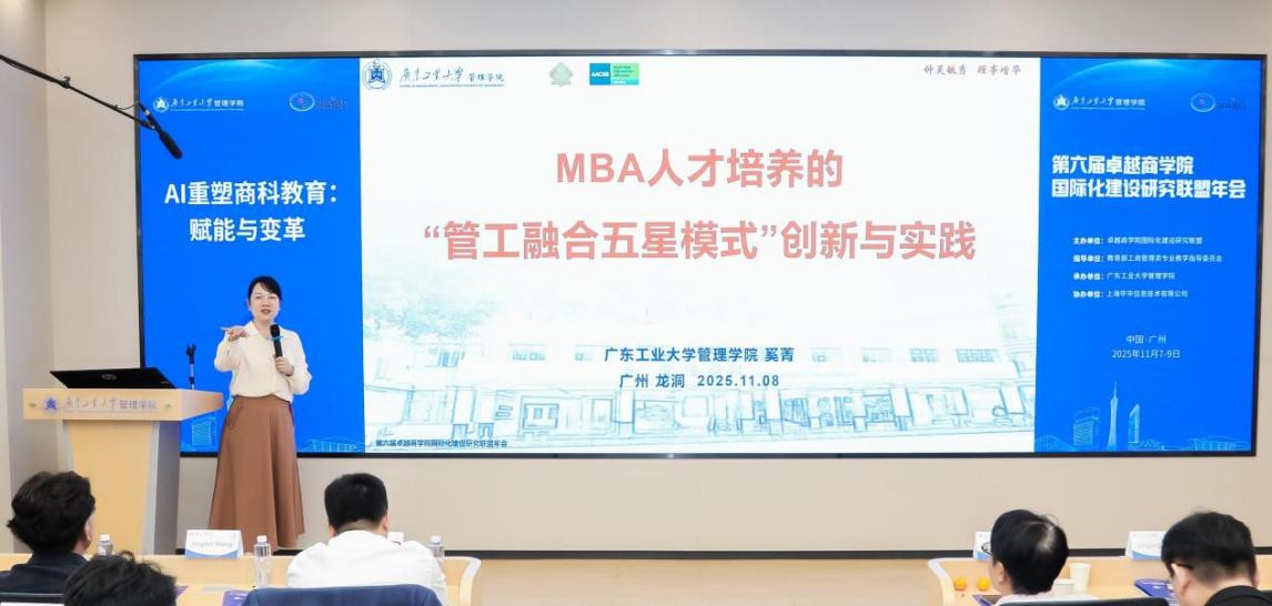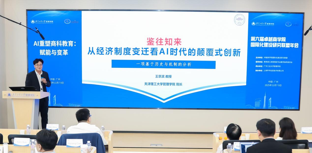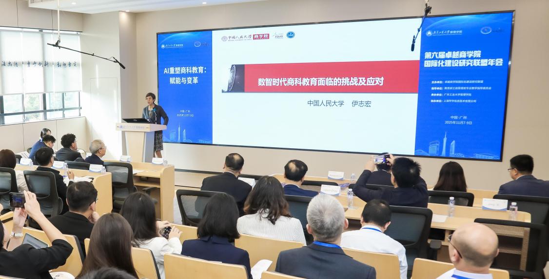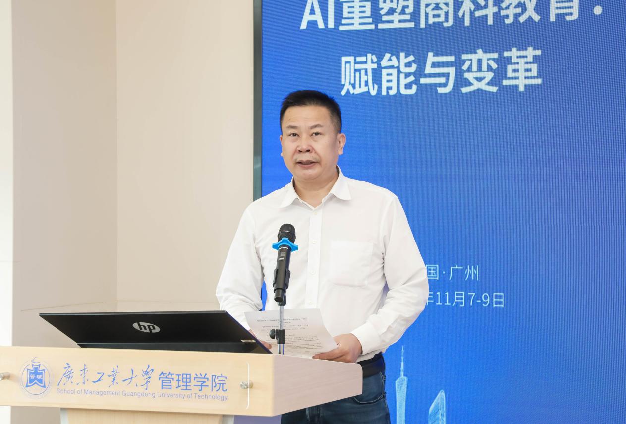 2025年11月8日,由广东工业大学管理学院承办的第六届卓越商学院国际化建设研究联盟年会隆重举行。本届年会以“AI重塑商科教育:赋能与变革”为主题,吸引了来自全国45所高校的近百名商学院院长和专业教师参会。广东工业大学副校长鲁仁全教授出席年会开幕式并致辞。