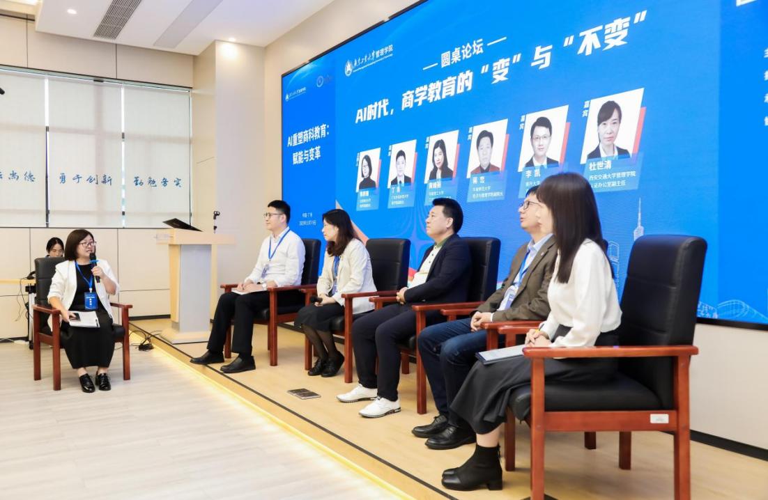 北京联合大学郭彦丽教授主持了圆桌论坛。她邀请广东外语外贸大学商学院副院长丁浩、西安交通大学管理学院本科教学项目主任杜世清、华南理工大学工商管理学院副院长黄嫚丽、华南师范大学经济管理学院副院长蒋峦、南开大学商学院副院长李凯5位嘉宾,聚焦 “AI时代,商学教育的变与不变”的核心议题,从多维视角深入对话,共话行业趋势,凝聚发展共识。