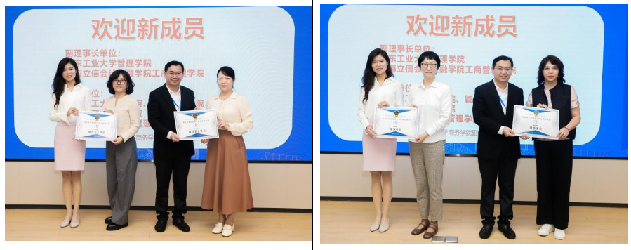 接着,年会举行了新成员单位加盟仪式和会旗交接仪式。广东工业大学管理学院、上海立信会计金融学院工商管理学院成为新的副理事长单位。成都理工大学商学院、北京工商大学商学院、东北财经大学工商管理学院、成都理工大学管理科学学院成为新的理事单位。