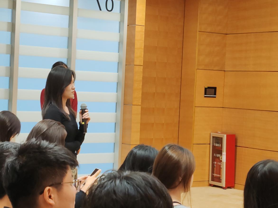 最后,学生们乘着高速电梯,回到会议室作最后的问答环节。我校土地资源管理专业的学子们思维活跃,踊跃提出了许多有价值的问题,而企业方也一一对这些问题进行耐心细致的回答。通过这样的互动提问环节,学生们对“第一太平戴维斯”——“珠江城”物业公司有了更深入的了解,使其在领略了建筑之美的同时,更读懂了广州的蓬勃活力,对“绿色、低碳、健康、智慧”的理念有了独特的体会。