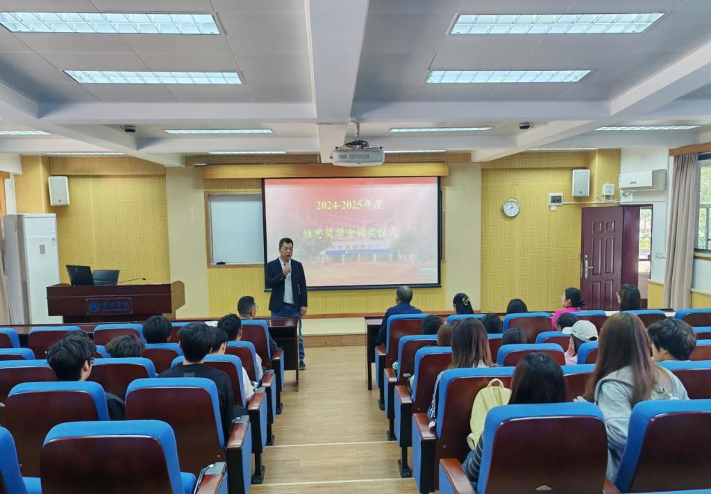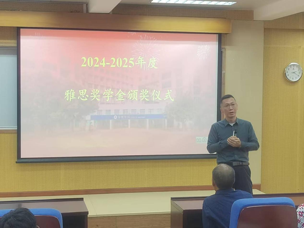 2025年11月25日,学院在A南217课室隆重举办2024-2025年度雅思颁奖仪式。学院副院长刘国胜、党委副书记何绍彬、中澳班班主任、辅导员、教务员、澳信教育集团留学服务专员以及约30名学生参与此次会议。