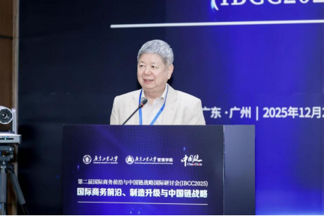 2025年12月20日至21日,第二届国际商务前沿与中国链战略国际研讨会(IBCC 2025)在广东工业大学(中国广州)成功召开。本届会议以“国际商务前沿、制造升级与中国链战略”为主题,由广东工业大学主办,广东工业大学管理学院、粤港澳大湾区人才发展战略研究院、浙江工商大学现代商贸研究中心、中国智能管理研究院、浙江工商大学中国链研究中心联合承办。浙江工商大学校长王永贵、广东工业大学管理学院院长吴小节、中国社会科学院工业经济研究所研究员黄速建、浙江工商大学中国链研究中心主任俞荣建担任会议联合主席。会议得到了教育部工商管理类专业教育指导委员会、教育部国际商务专业教育指导委员会、长三角工商管理学科联盟、教育部市场营销专业虚拟教研室、全国《管理思维》课程虚拟教研室等单位的大力支持。