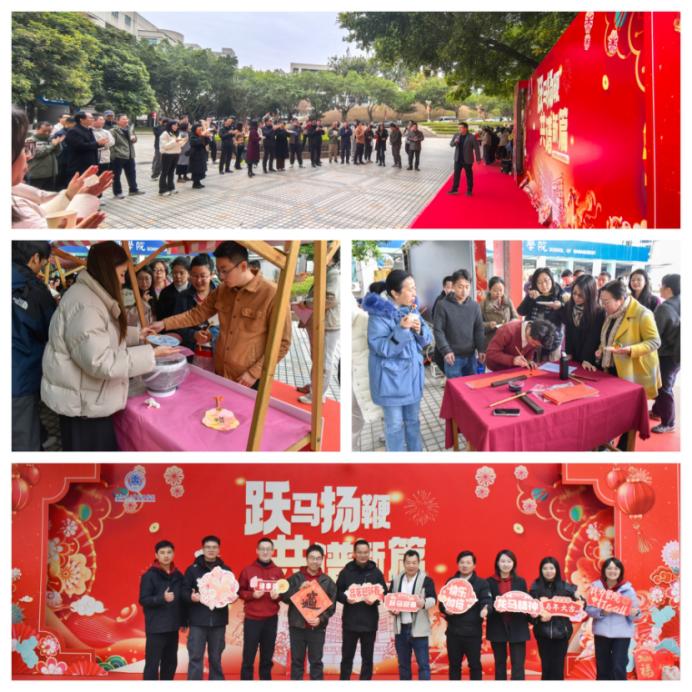 教职工大会之前,学院工会协同校友会在院楼广场举办“跃马扬鞭·共谱新篇”迎新春品茗会,感谢过去一年老师们的辛勤付出,表达新春的祝福与期盼,以茶为媒让老师们放松身心、共话情谊、共启新程。