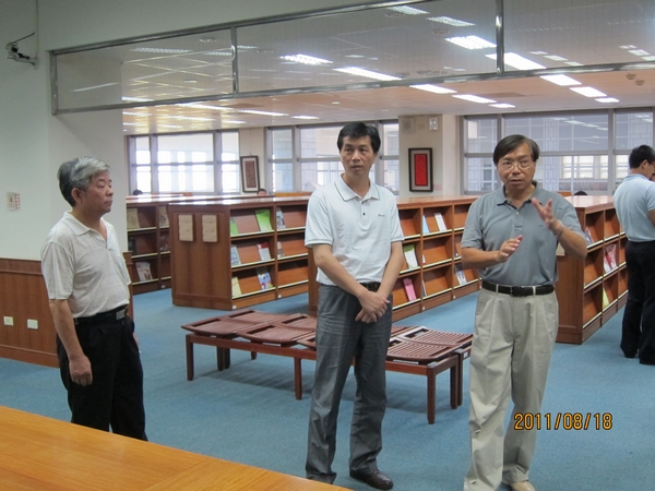 8月18日上午9点30分,管理学院教师代表一行18人在莫赞副院长的带领下来到国立高雄大学进行访问。首先,办公室秘书陈晓珠老师带领我院教师来到该校图书馆。图书馆资料组组长陈老师热情接待并引领老师们参观该校图书馆的藏书、电子期刊和语音课室。据介绍,依托先进的网络技术,该校的电子期刊和多媒体语音课室在岛内大学占据领先地位,大力支持该校的教学与科研管理工作。随后,陈秘书带领老师们到会议室进行正式的交流活动。出席本次交流会的代表有高雄大学校长黄英忠教授、副校长庄宝鹏教授、徐忠枝研发长、金融管理学系高兰芬主任以及亚太系杨咏凯助理教授。