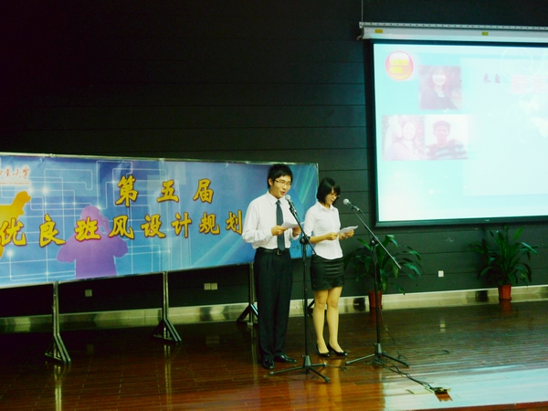 我院在台上展示2010级财管3班优良班风设计规划方案