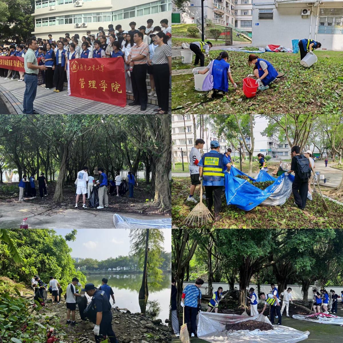 为进一步落实“两热”疫情防控工作,全面筑牢校园健康防线,10月16日,管理学院联合总务部在龙洞校区开展爱国卫生运动,实际行动支持学校的“两热”防控工作。管理学院党委副书记何绍彬、总务部物业监管办张云交、劳动教育课教师吴燕鹏与余娟、物业公司员工及管理学院2025级新生代表共计近200人参加了本次活动。