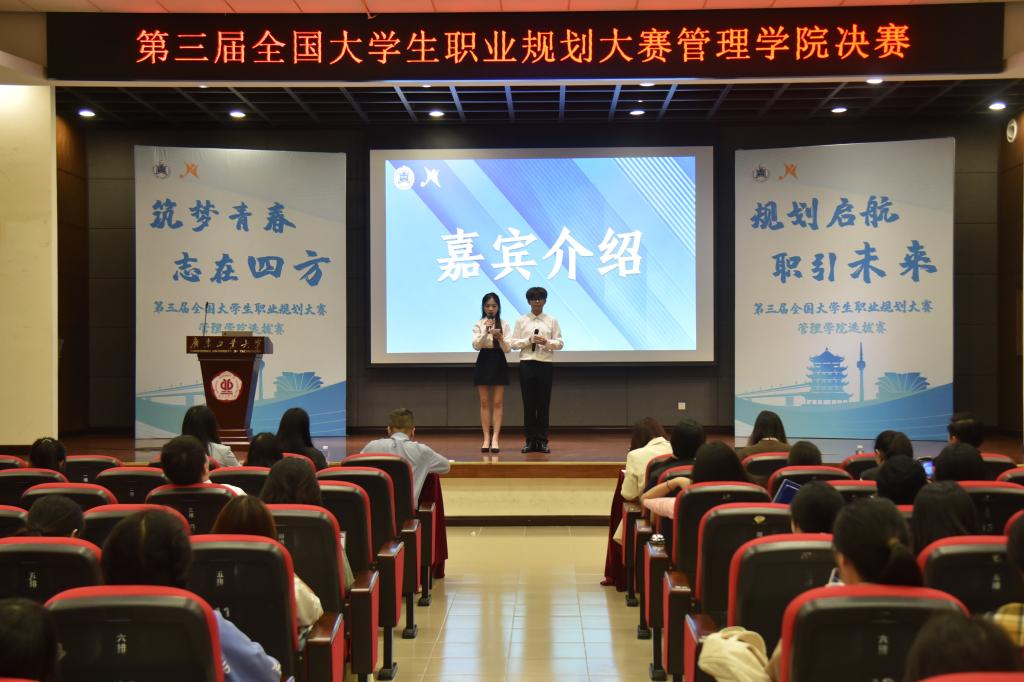 为进一步加强大学生职业生涯规划教育和就业指导,我院于11月13日在龙洞校区学术报告厅顺利举办第三届全国大学生职业规划大赛(以下称“职规赛”)管理学院决赛。大赛邀请了健合集团中国区校招项目负责人王雅贤、王绮婷,德勤中国校园招聘资深校招HR王茜,广州视源电子科技股份有限公司校园招聘负责人王梦妍担任评委,学院党委副书记何绍彬、辅导员张辉以及在校学生共计300余人参加了本次活动。