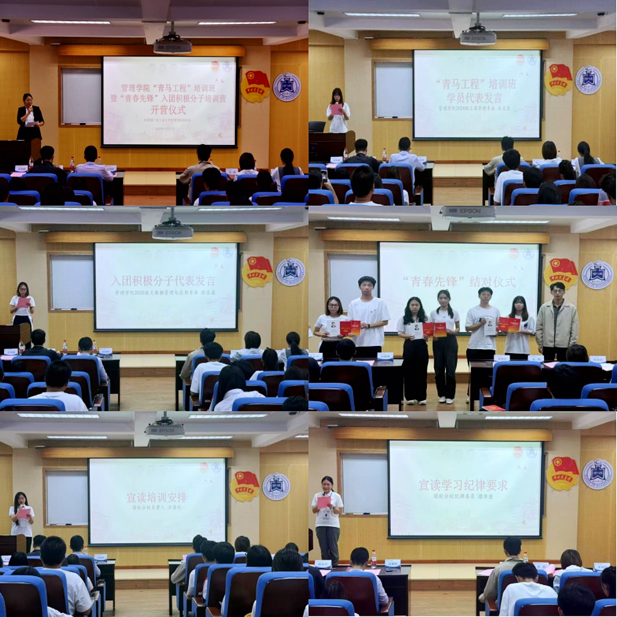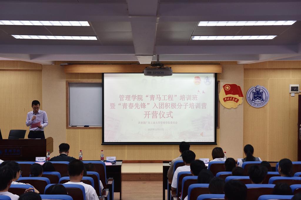 理论铸魂强信念,实践砺行育先锋。11月11日,我院在A南217举办2025年(秋季)“青马工程”培训班暨入团积极分子培训营开班开营仪式。管理学院副院长刘国胜、团委书记吴燕鹏、党建组织员黄晓珩、林永兴、辅导员余娟、张涵喆等老师与150余名学生骨干及入团积极分子参加了本次开班开营仪式。
