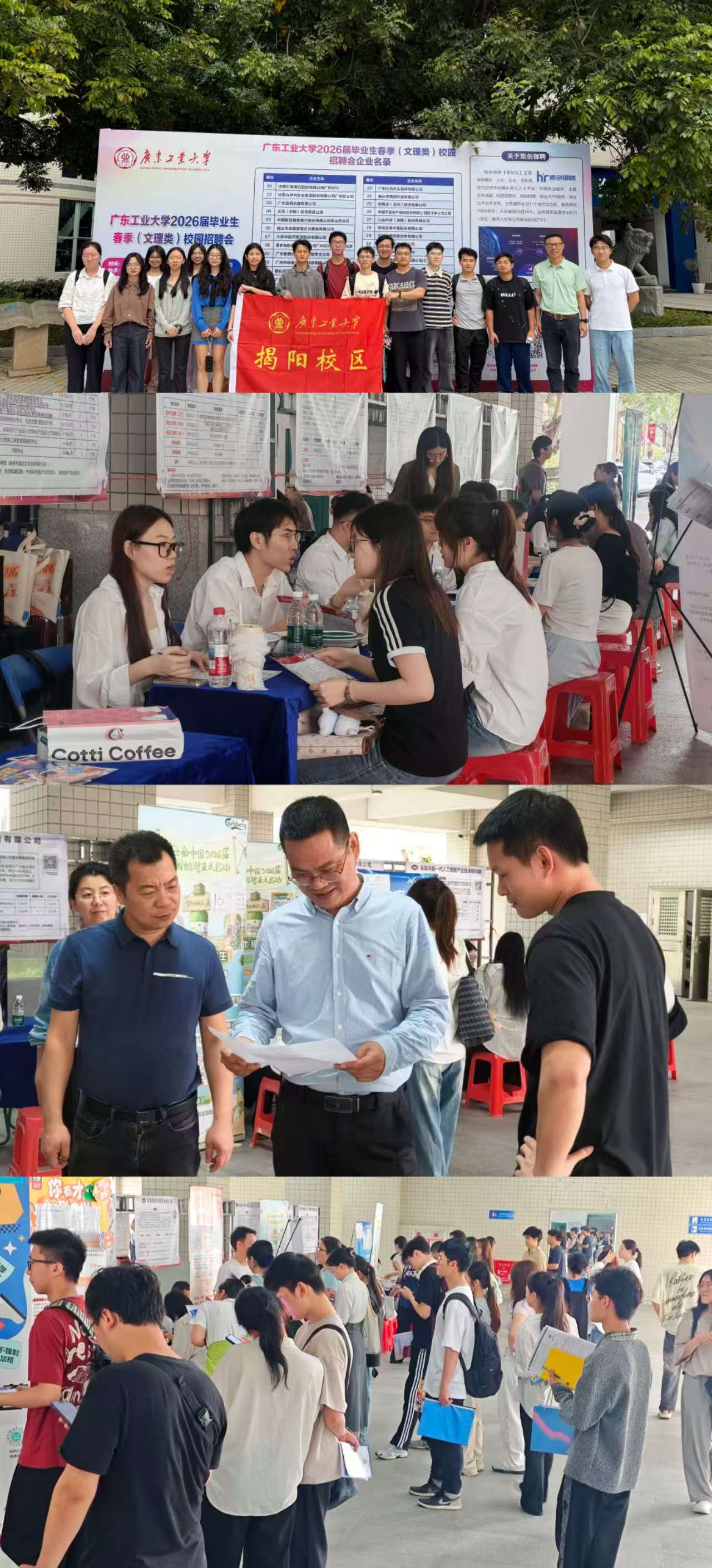 四、专场招聘,精准推送岗位。3月31日下午,学校在龙洞校区举办2026届毕业生春季(文理类)校园招聘会,工商银行广州分行、伊利集团、大参林医药集团等近50家知名企业来校招聘应届毕业生,现场提供近1500个就业岗位。学院组织揭阳校区电商专业毕业生参加招聘会,提供就业机会。同学们表示,足不出校就能与用人单位面对面交流、物色心仪岗位,感到特别暖心,希望学校多开展此类岗位推送活动。