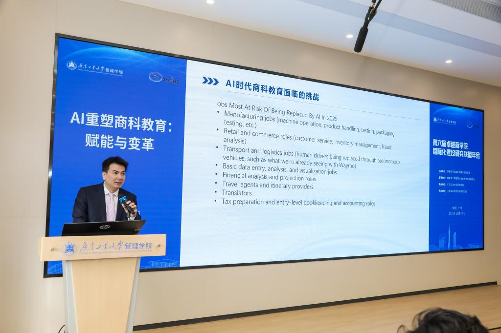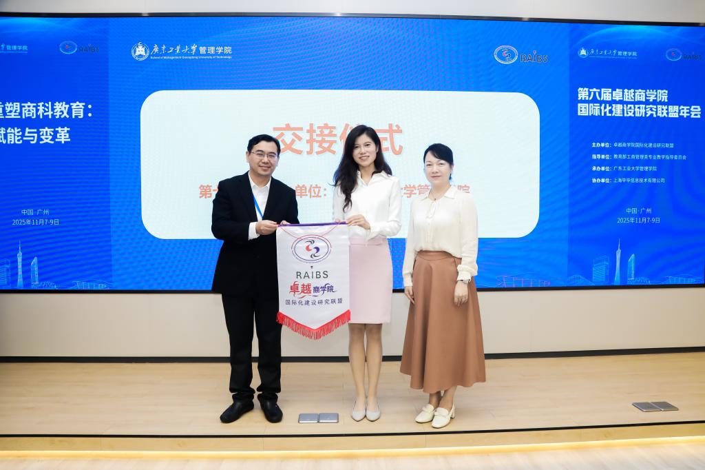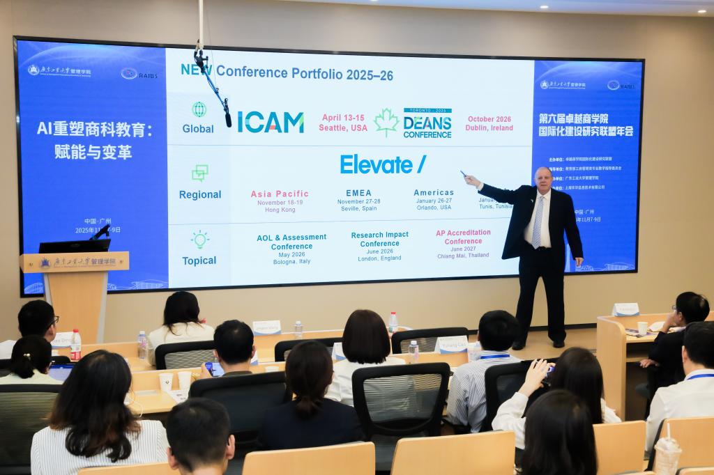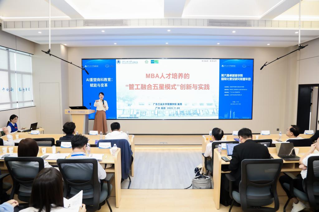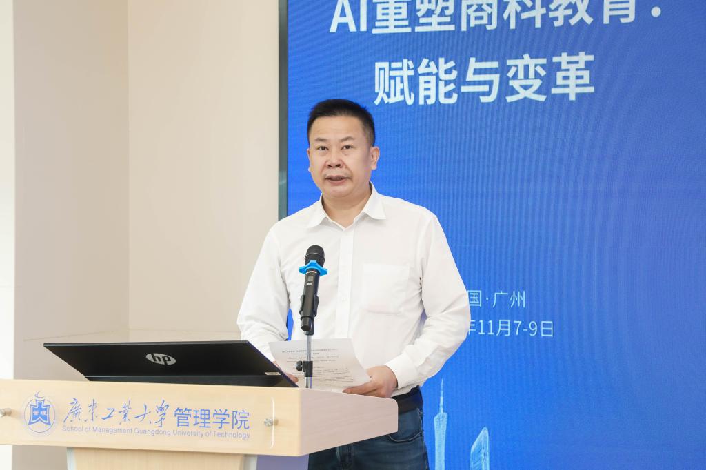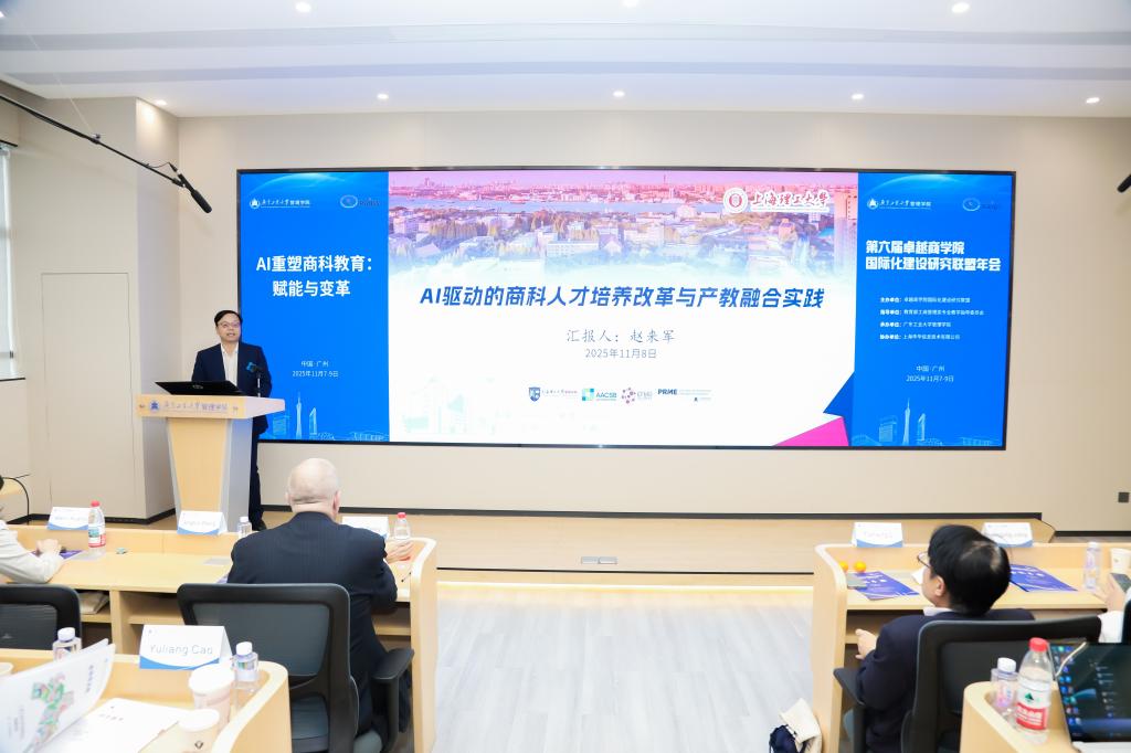 2025年11月8日,由广东工业大学管理学院承办的第六届卓越商学院国际化建设研究联盟年会隆重举行。本届年会以“AI重塑商科教育:赋能与变革”为主题,吸引了来自全国45所高校的近百名商学院院长和专业教师参会。广东工业大学副校长鲁仁全教授出席年会开幕式并致辞。