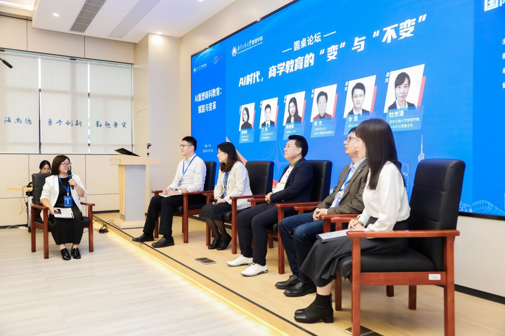 北京联合大学郭彦丽教授主持了圆桌论坛。她邀请广东外语外贸大学商学院副院长丁浩、西安交通大学管理学院本科教学项目主任杜世清、华南理工大学工商管理学院副院长黄嫚丽、华南师范大学经济管理学院副院长蒋峦、南开大学商学院副院长李凯5位嘉宾,聚焦 “AI时代,商学教育的变与不变”的核心议题,从多维视角深入对话,共话行业趋势,凝聚发展共识。