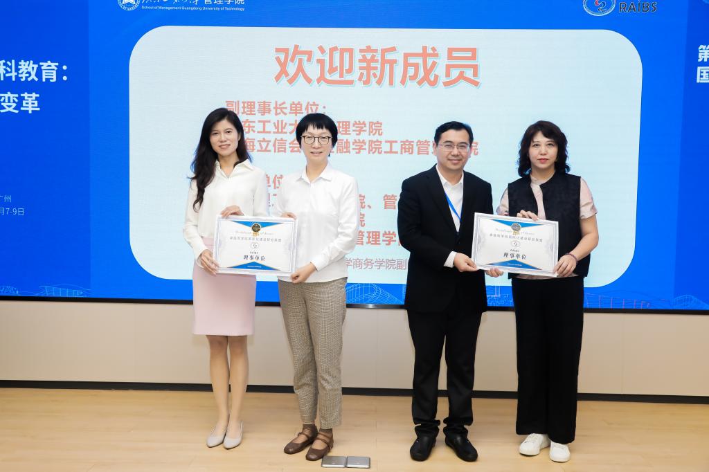 接着,年会举行了新成员单位加盟仪式和会旗交接仪式。广东工业大学管理学院、上海立信会计金融学院工商管理学院成为新的副理事长单位。成都理工大学商学院、北京工商大学商学院、东北财经大学工商管理学院、成都理工大学管理科学学院成为新的理事单位。